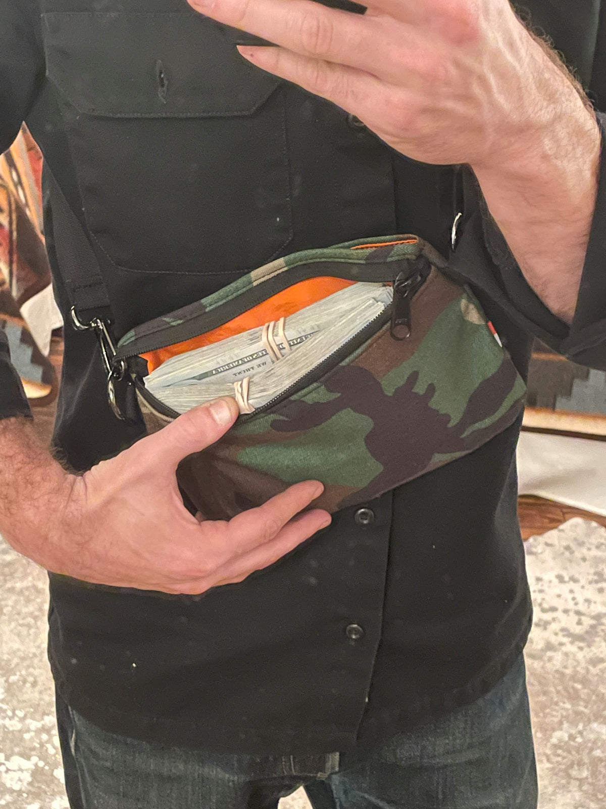 This sturdy sidekick goes with me eveywhere and keeps everything organized and within hand's reach. Zipper pocket holds way more than I imagined. On an average day it's filled with my wallet, smokes, keys, glasses, usb sticks and other random items. The two pockets arw great for things you reach for often. Mine usually has a lighter and my cell. I usually wear it across my chest but it also works like a money belt (or hip sack) around your waste which I've done on some travel days when discretion is advised. Quality is bullet proof. Another T&B sure shot.